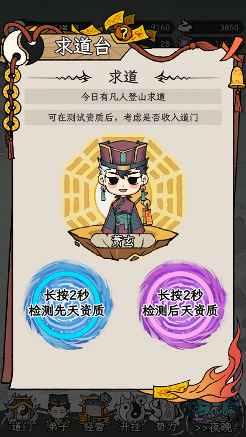 4、玩家可招收弟子,并查看其先天和后天资质;