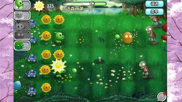 4、关卡的右上角有一个调速的功能,可以调整僵尸进攻的速度。