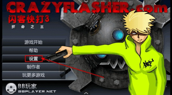 1.首先进入闪客快打3中文版游戏,点击设置了解基本操作