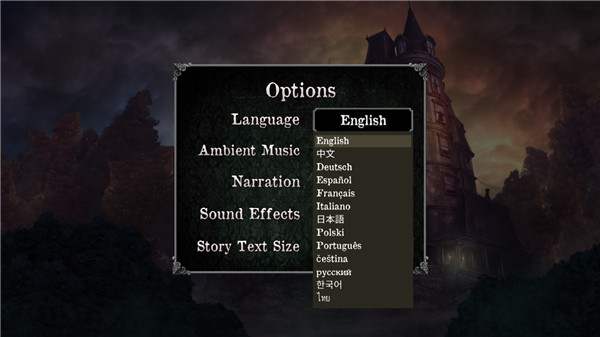 1、打开疯狂诡宅手游,点击选项,选择语言为中文即可将游戏语言设为中文;