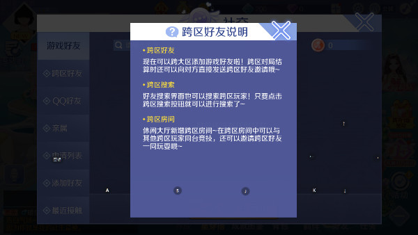 可跨大区添加好友、搜索跨区玩家,并在跨区房间同台竞技邀请好友。