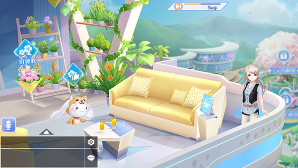 点击角色进入阳台,查看邮箱、点赞与送花,还能进入花园种植鲜花。