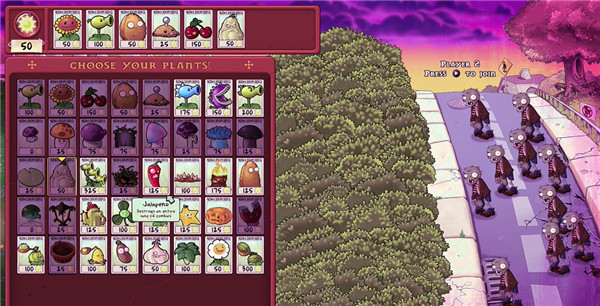 在植物列表中挑选适合战斗的植物组合,为即将到来的僵尸浪潮做准备。