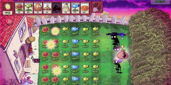 放置向日葵收集阳光,利用阳光部署攻击和防御植物抵御僵尸进攻。