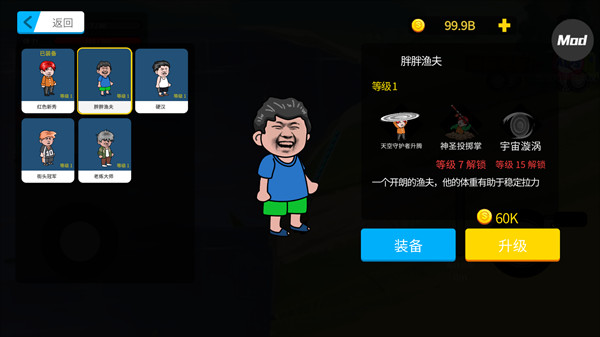 2、胖胖渔夫:开朗渔夫,体重稳定拉力,技能天空守护、神圣投掷、宇宙漩涡。