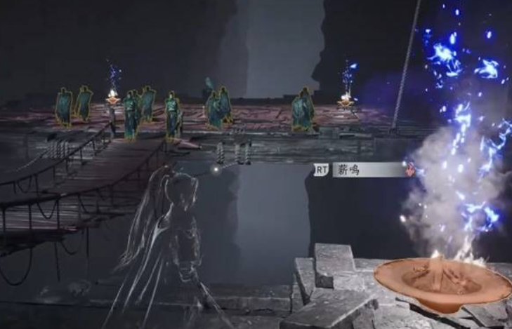 到达独木桥后发现人比较多,不要直接过去,从左边往上走。