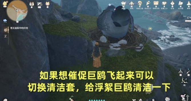 如果窝里巨鸥刚飞回来,可以切换清洁套,给巨鸥清洗一下,巨鸥就会飞起来,这时候再切换黏黏爪技能即可;