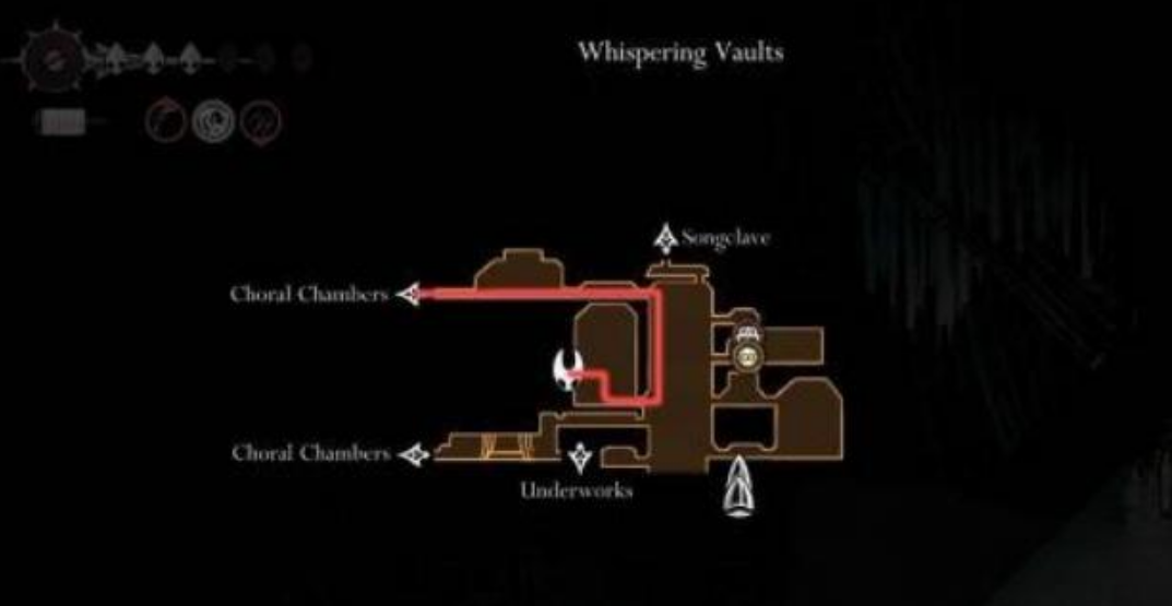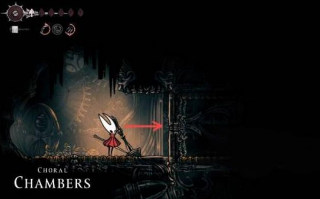 当我们抵达低语书库后一直向右走,到了垂直房间里往下走,然后寻找通往左侧房间的路会看到许多可以推的金属箱子,只需要一边推箱子一边前进就能进入圣咏殿中苍白油所在房间即可
