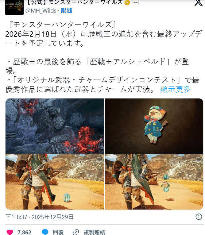 《魔物猎人荒野》宣布预计于2026年2月18日实装最终更新!