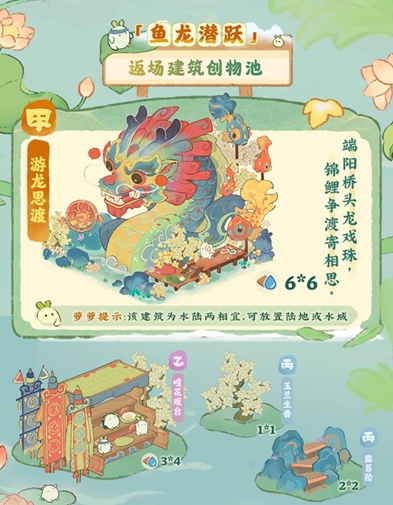 在《桃源深处有人家》万象更新游天地活动中,鱼龙潜跃创物池将限时返场!本期UP创物池上架了水陆两相宜的甲等建筑—游龙思渡。以下是小编为大家准备的详细活动内容,有兴趣的玩家们快来一起看看以下资讯吧!