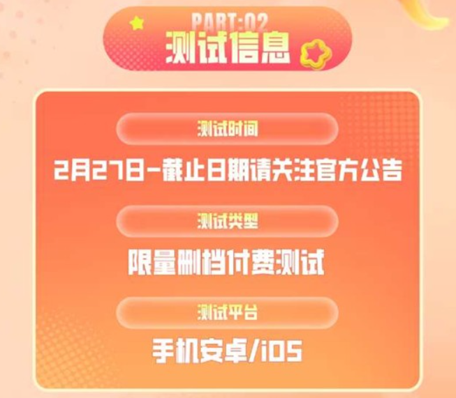 测试时间:2月27日开启(截止日期请关注官方公告)