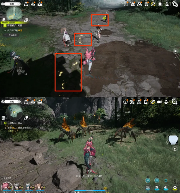 3、之后往前走,把地面清洗出3处脚印即可。之后往右走会发现他的孙子,救一下就行。