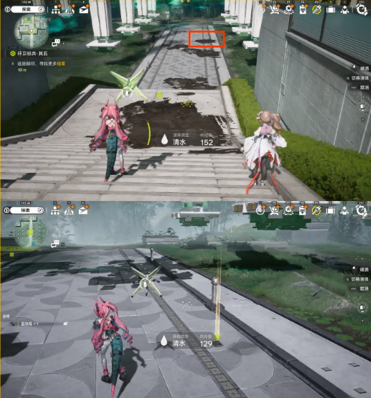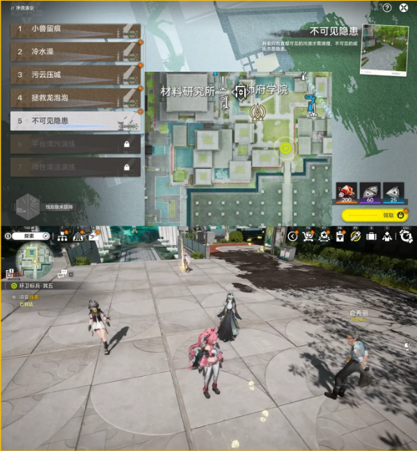 1、第5天的关卡位于天师府学院,要根据脚印来寻找人,打开Baker和老俞对话就能开始活动。按R键切换喷洒清水,本次只需要把图中的位置有明显标记的脚印清洗出来就行(不要全清洗)。