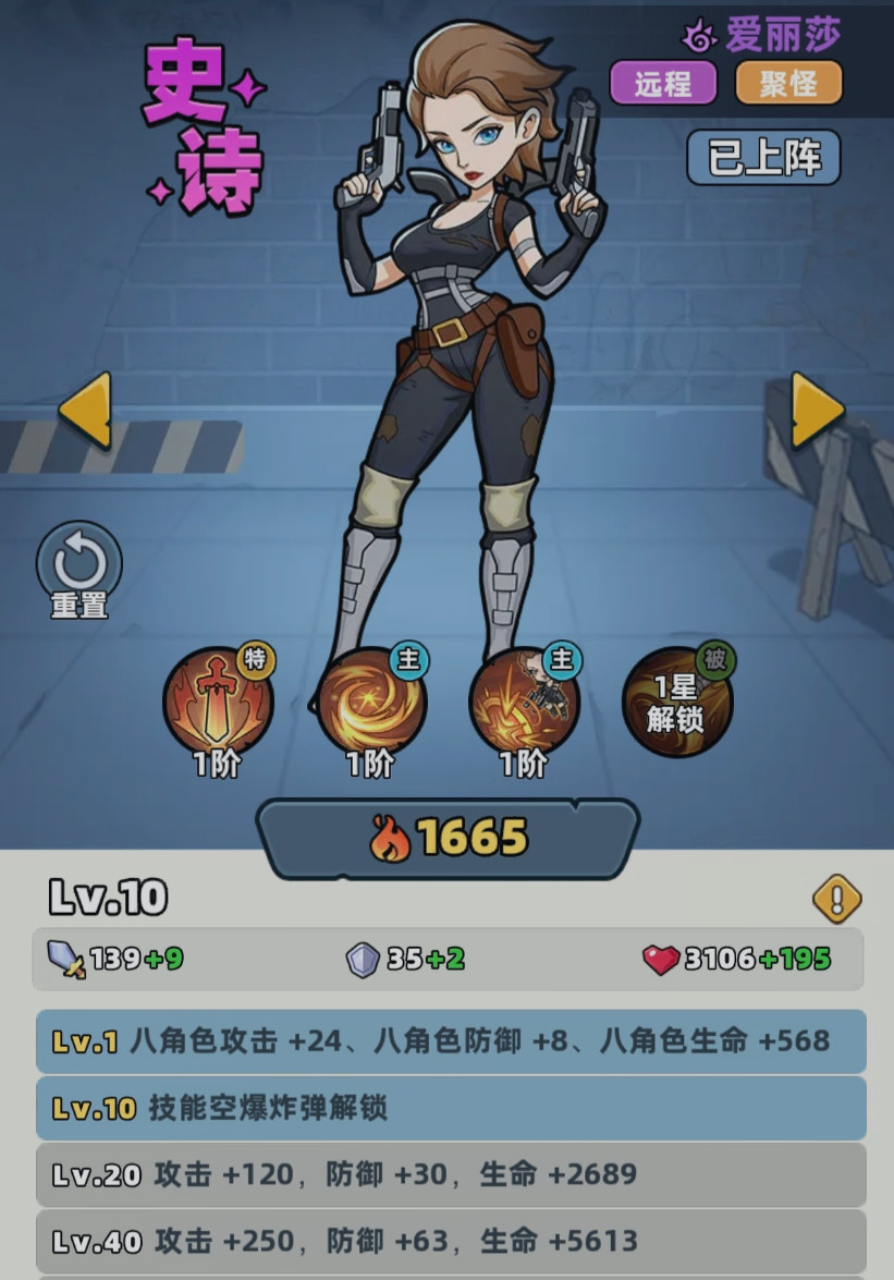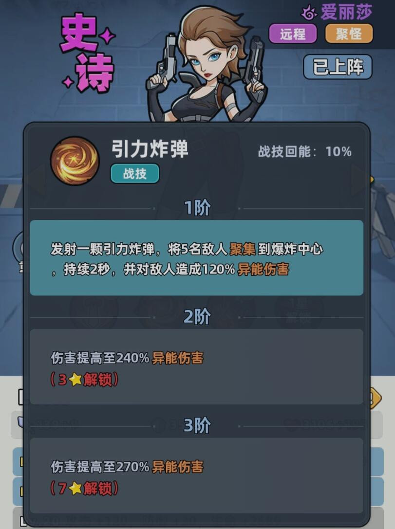 爱丽莎作为辅助,她实现的是远距离作战,对于玩家来说,它能够聚怪,控制,属性是比较扎实的,一旦当他的等级得到提升之后,能够逐步的增加攻击、防御跟生命属性。当爱丽莎还处于一级的时候,能够为整个队伍提供攻击、防御和生命的基础加成。一旦10级解锁空爆炸弹的话,往往让他的技能体系的实力变得更加的强悍。这时候不仅对范围内的多名目标造成伤害,更关键的是还能够对已经被聚怪的敌人追加额外的伤害,正是因为这些技能形成了闭环,所以他才能够给整个队伍创造更好的输出环境。