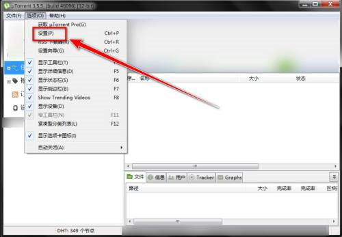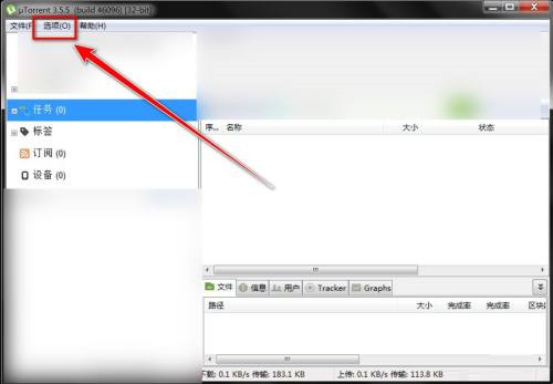 1、打开uTorrent,点击菜单栏上的“选项”。