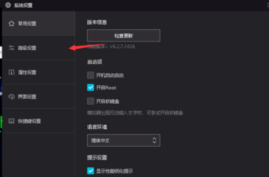 2、进入新界面后,点击左侧中的"高级设置"选项。
