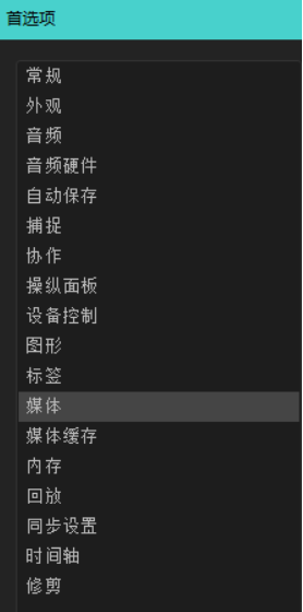 在弹出的“首选项”窗口左侧,选择下方的“媒体”选项。