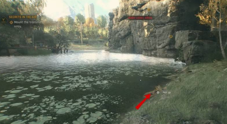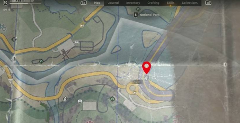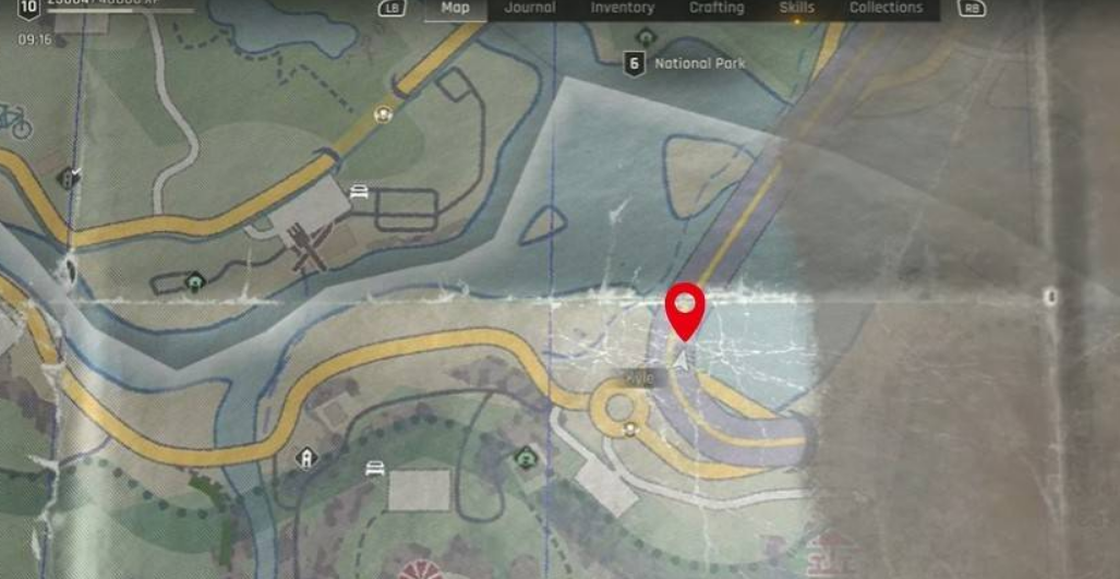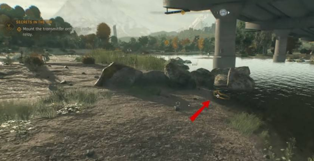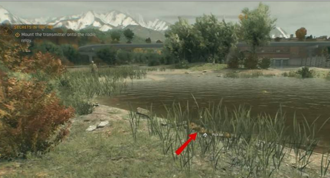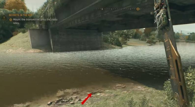 下方地图前往断桥区域,在右侧河岸附近可以拾取。