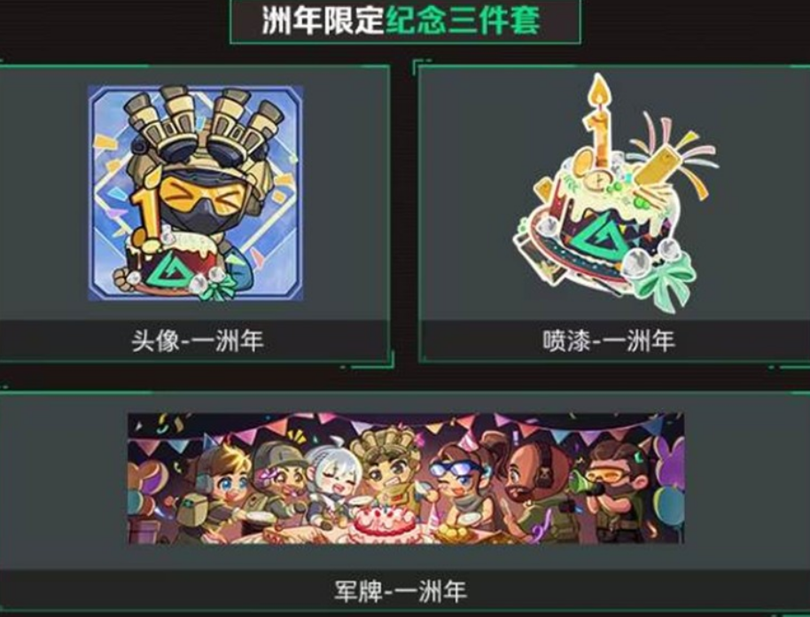 包括头像、喷漆和军牌的洲年限定纪念三件套,让玩家在游戏中展示独特的洲年风格。