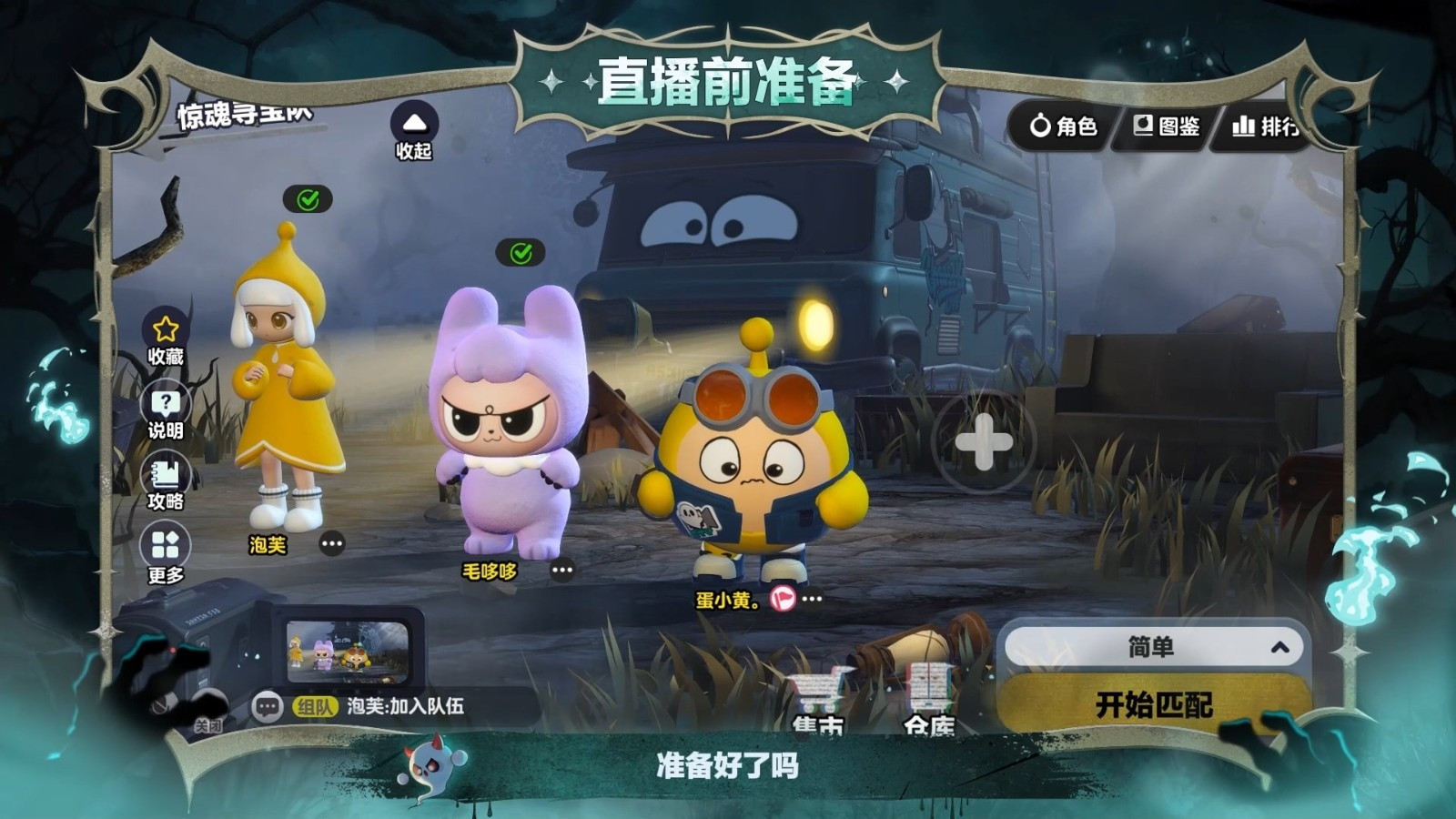 蛋仔们进入直播前,记得先装配道具和选择角色哦!
