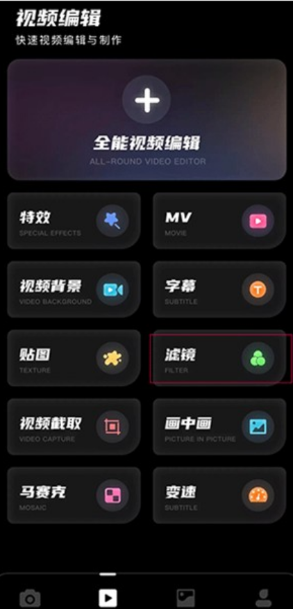 另外点击功能模块,选择滤镜也可以选择。