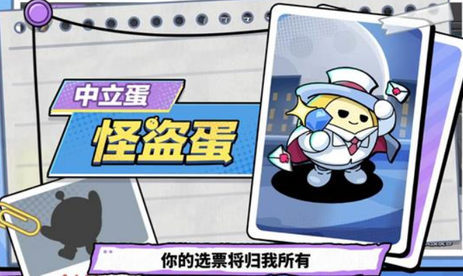 能力:<怪盗蛋>能够预告并控制某位蛋仔的得票,这将对游戏的进程产生重大影响。蛋仔们需要警惕<怪盗蛋>的行动,以免其通过操控投票来影响游戏结果。