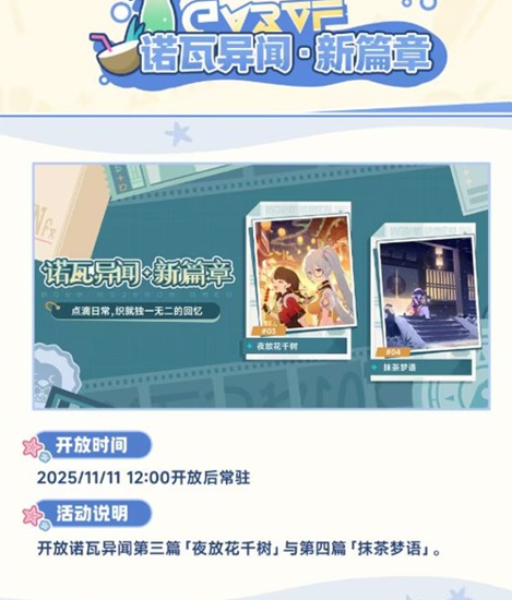 活动说明:开放诺瓦异闻第三篇「夜放花千树」与第四篇「抹茶梦语」。