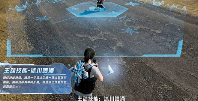 “绝对零度”的主动技能名为“冰川喷涌”。玩家可以通过按住技能按钮选择一个地点生成一块大型冰川。这块冰川不仅能够为玩家提供掩护,还具有单向护盾的效果,能够阻挡来自特定方向的攻击。快速点击技能按钮会直接在自己脚下生成冰川,为玩家提供即时的防御。