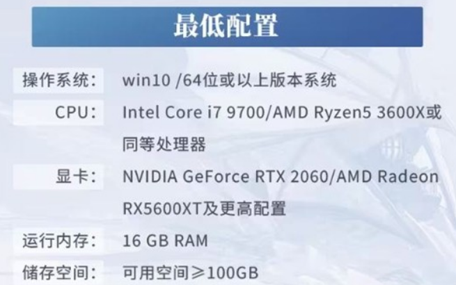 显卡:NVIDIA GeForce RTX 2060/AMD Radeon RX5600XT及更高配置