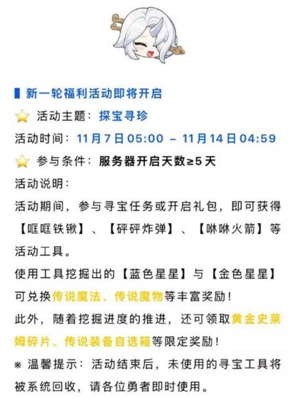 *温馨提示:活动结束后,未使用的寻宝工具将被系统回收,请各位勇者即时使用。