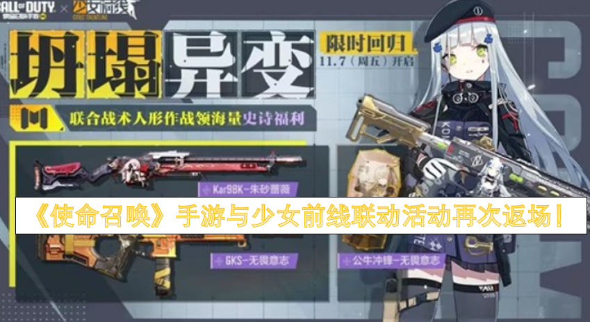 《使命召唤手游》与《少女前线》联动活动再度来袭!这次跨次元合作带来了许多丰富的福利与内容,不仅有全新联动角色和限定皮肤,还有惊喜奖励等着玩家们领取!以下是小编为玩家们带来的详细是资讯,有兴趣的玩家们快来一起看看吧!