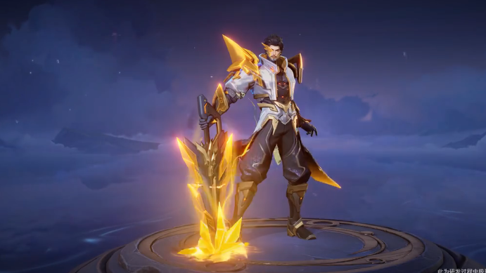 曹操在这款皮肤中化身为一位KPL名将,一头黑色短发利落如刃,展现出他久经沙场的决断与沉稳。金色能量相互交织,形成全新的战术眼罩与肩甲,表面的KPL纹样随呼吸脉动闪烁,抬手间尽显名将风范。而武器设计以“KPL”狼首为核心,分段式能量随光轨延展剑身,橙金相间的粒子在剑锋跃动,挥舞时拖曳出橙、蓝双色的绚丽光弧,剑风凌厉,威严毕露。