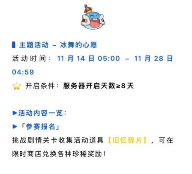参赛报名:挑战剧情关卡收集活动道具【旧忆碎片】,可在限时商店兑换各种珍稀奖励!