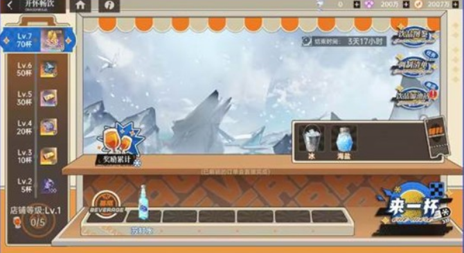活动玩法:活动期间,玩家可以在饮品台调配各类饮品,并通过升级店铺解锁更多调制材料和奖励。根据店铺等级的提升,玩家还可获得全新炼金武器「极寒咆哮」、限定皮肤-极地宣言等更多稀有奖励。