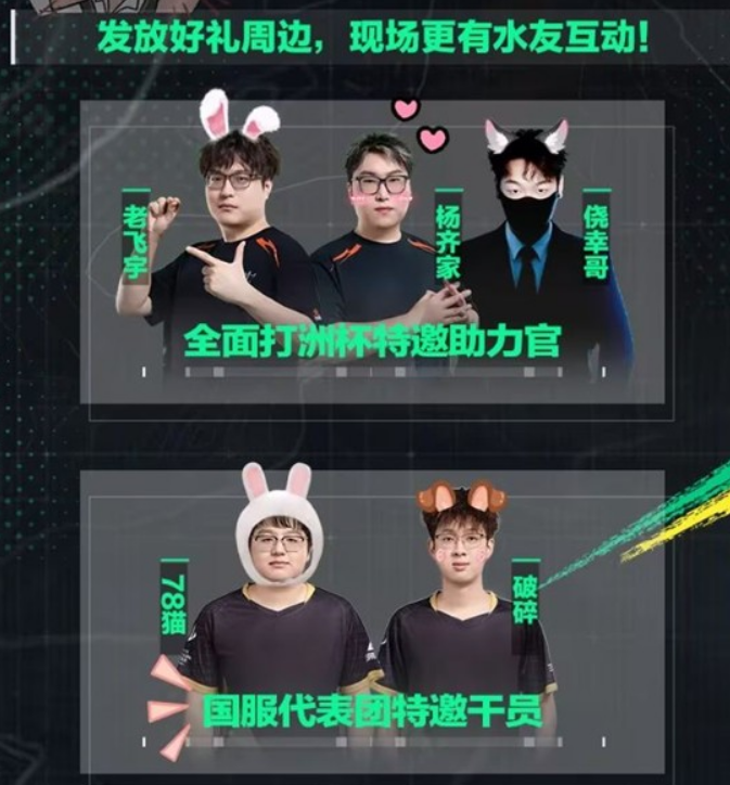 本次活动不仅是一场电竞盛宴,更是一次线下狂欢。除了精彩的比赛,现场还设有多个互动环节,包括与主播亲密互动、领取丰厚奖品等。老飞宇、杨齐家、侥幸哥、78猫、失控的破碎等知名主播将亲临现场,为参赛队伍加油助威。