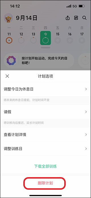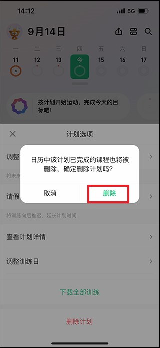 最后在弹出的提示框中点击“删除”按钮即可成功取消训练计划。
