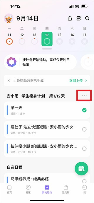 进入我的运动页面,找到需要取消的训练计划,点击屏幕右侧的“三点”按钮;