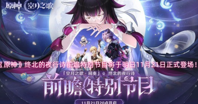 《原神》「『空月之歌·间奏』终北的夜行诗」前瞻特别节目将于11月21日(本周五)20:00正式开启。