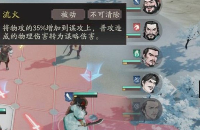 刘晔的被动技能流火是他的核心效果,触发流火可以将物攻的35%增加到魔攻上。在刘晔进行普攻后,还能根据普攻数值将物理伤害转化为谋略伤害,这类效果无法被清除。当刘晔处于流火状态加成时,这个角色能展现出强大的实力。