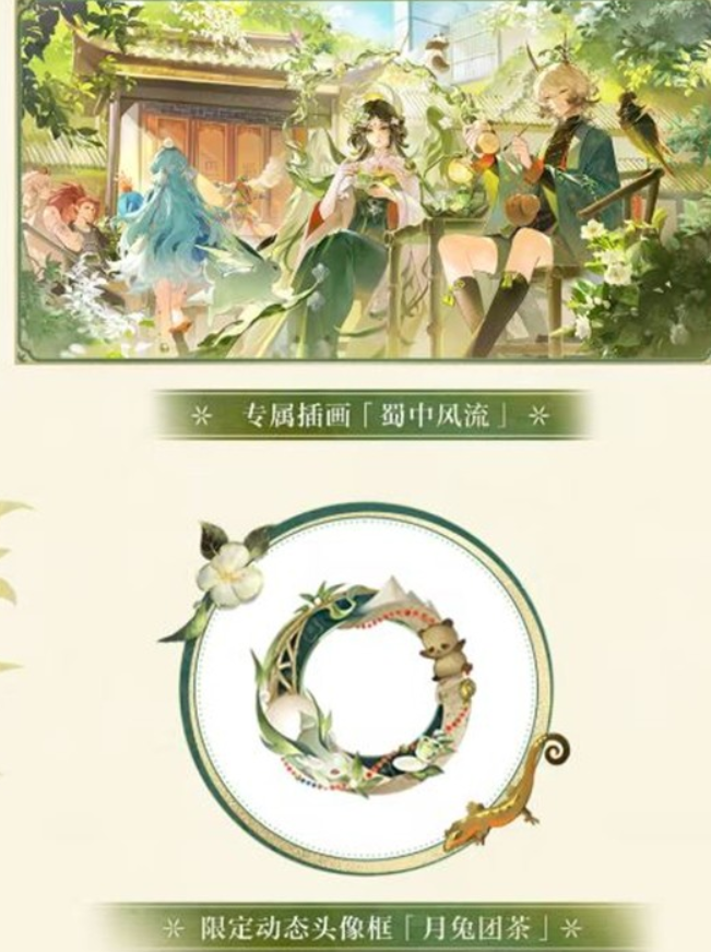 玩家在获得本系列任意一款皮肤后,除了可以拥有新皮肤外,还可以获得专属插画「蜀中风流」。同时,获得两款皮肤还将解锁限定动态头像框「月兔团茶」,为玩家的游戏体验增添更多乐趣。