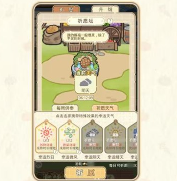 这些幸运币可以用来祈愿,玩家可以消耗它们来大胆祈愿自己想要的幸运天气。一旦祈愿成功,玩家就能体验到掌控天气的快感,并享受不同幸运天气带来的特殊效果。