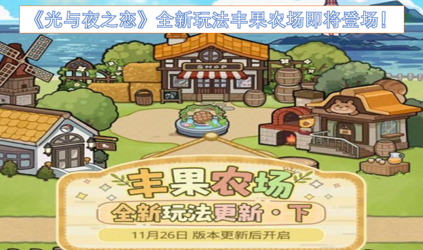 《光与夜之恋》宣布将在明日11月26日版本更新后推出全新丰果农场玩法,为玩家带来更加多样化的互动体验!本次更新中推出了 祈愿坛与海滨汤泉新玩法,为玩家带来更有趣的游戏体验!有兴趣的玩家们可以查阅以下活动资讯!