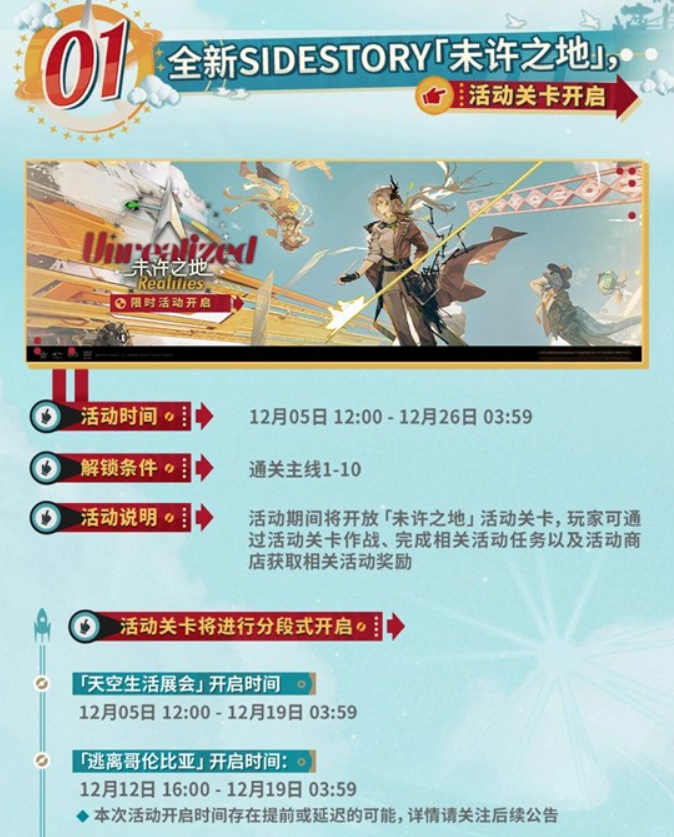 活动期间将开放「未许之地」活动关卡,玩家可通过活动关卡作战、完成相关活动任务以及活动商店获取相关活动奖励
