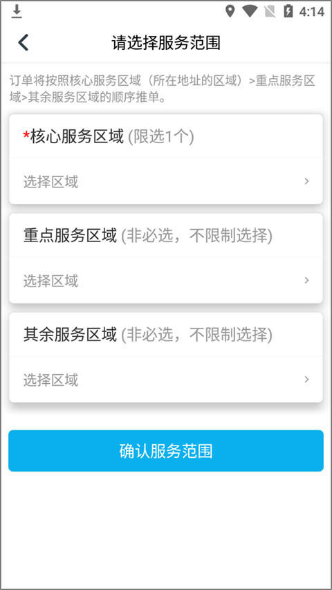 3、区域分为了核心区域,重点服务区域,其余服务区域,进行选择修改。