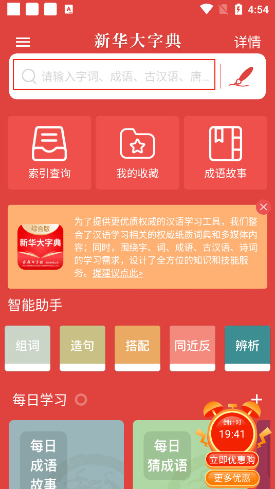 新华大字典第3版为用户提供权威而全面的汉字学习与查阅服务。无论是字形结构、整字笔画、部首分类,还是五笔编码,都能快速检索到所需的汉字信息,轻松满足学习和日常使用的需求。除了基础查询外,还支持摄像头识别查词、通知栏快捷检索,结合标准发音、生词收藏与复习功能,构建完整的学习闭环。新华大字典第3版下载安装后,简洁高效的设计,让汉字学习与掌握更加直观便捷。