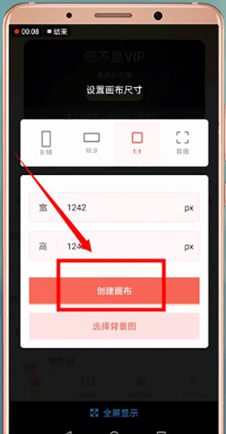 2、可以自定义画布尺寸,也可以选择背景图。我们按照默认的尺寸1242*1242设置。