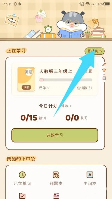 4、点击右上角的“更换词书”
