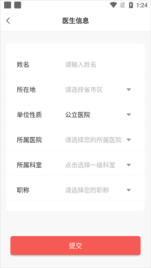 3、然后在打开的新页面中填写医生信息进行提交,等平台审核后即可成功以医生身份登录。