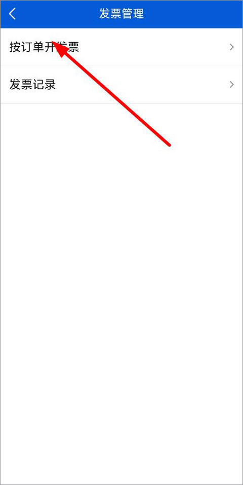 3、打开发票管理页面中,可以看到游按订单开发票、发票记录两个栏目,点击按订单开发票。