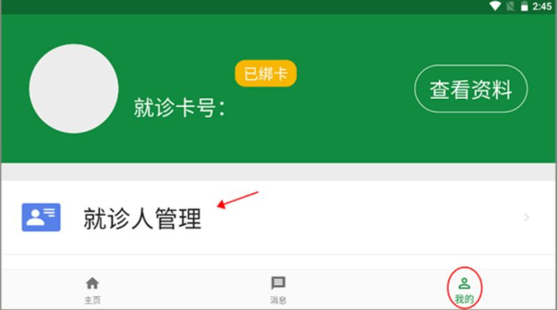 2、打开软件登录账号之后,切换到“我的”功能模块,点第一个功能“就诊人管理”。